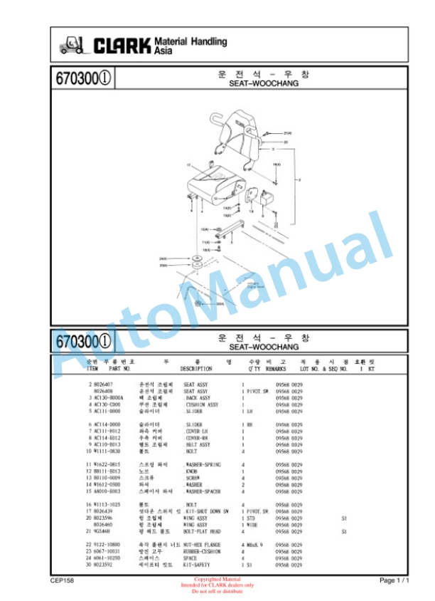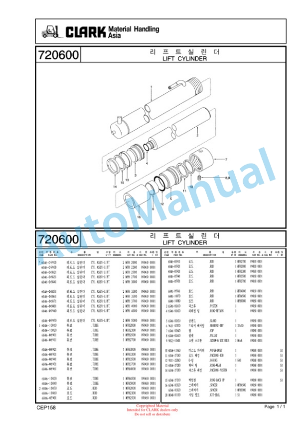 Clark CEP 15, CEP 18, FX 153, FX 158B Parts Catalog