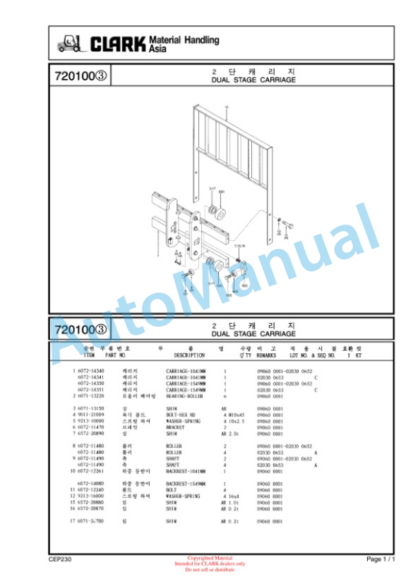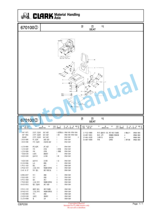 Clark CEP 20, CEP 25, FX 203, FX 253B Parts Catalog
