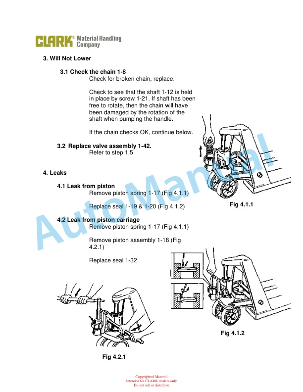Clark CGH23, CGH25 Pallet Truck Operator, Parts and Service Manual