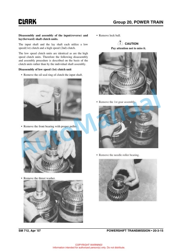 Clark 5000 Series Powershift Transmission Maintenance and Service Manual SM-54