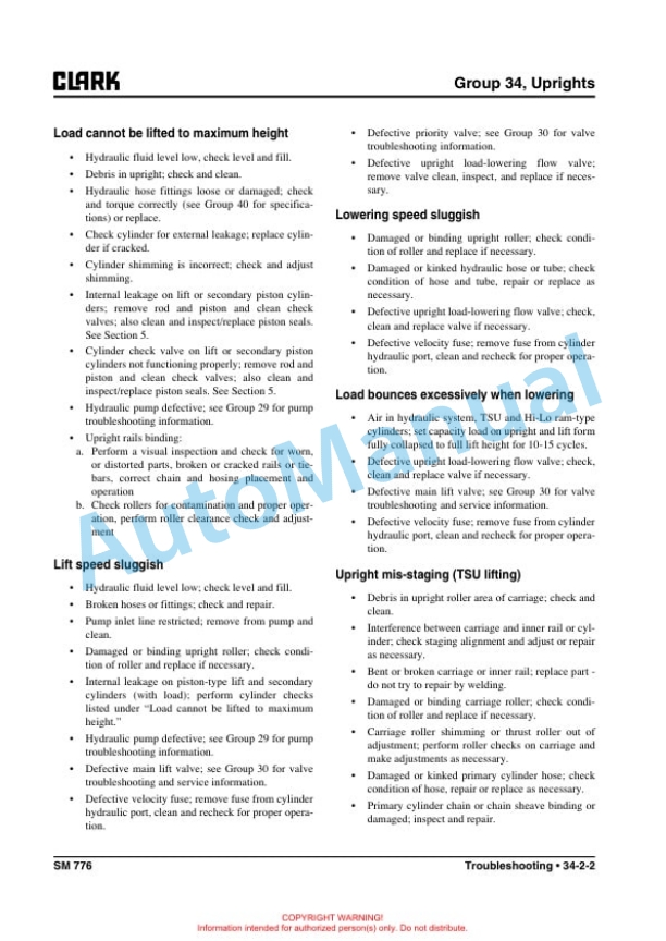 Clark CRX 10, 13, CRX 14, 15, 18, CRX 20, 25 Service Manual SM-776