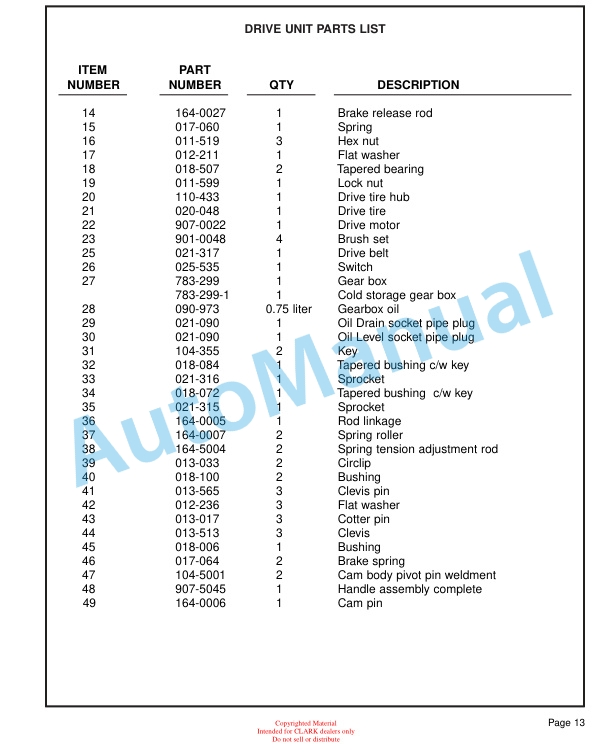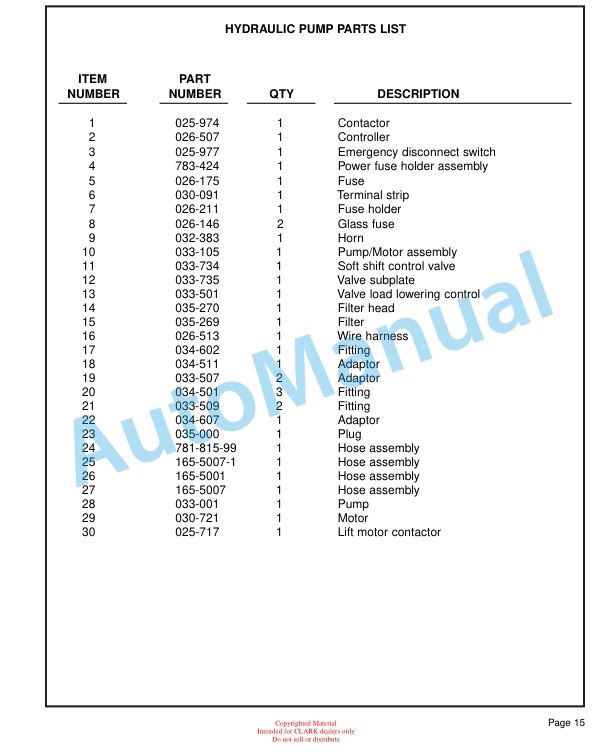 Clark CSM 7, CSM 10, CSM 15 Service and Parts Manual SPM 627 - Image 2