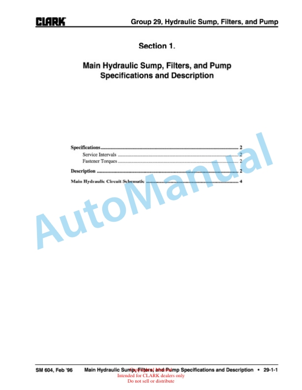 • 18.1. Main Hydraulic Sump, Filters, and Pump Specifications and Description