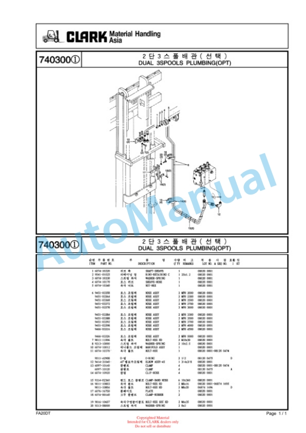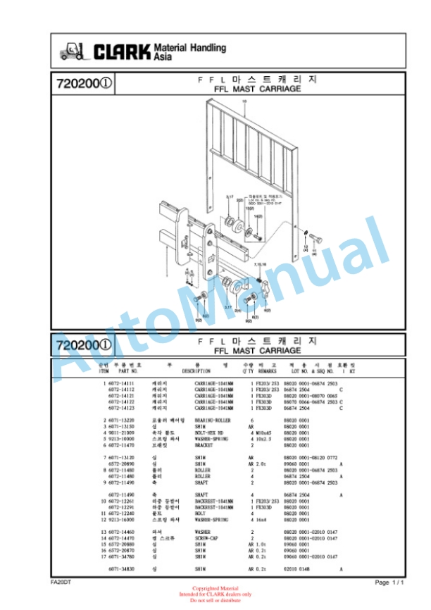 Clark FX203D, FX253D, FX303D, SF 20D, SF 25D, SF 30D Parts Catalog