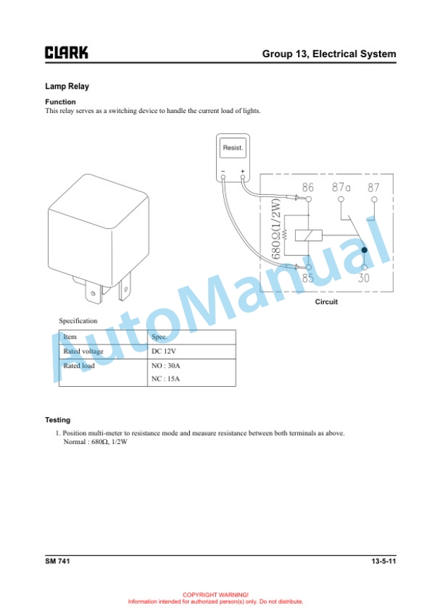 Clark GTS 20, 25, 30, 33 L Service Manual SM-741