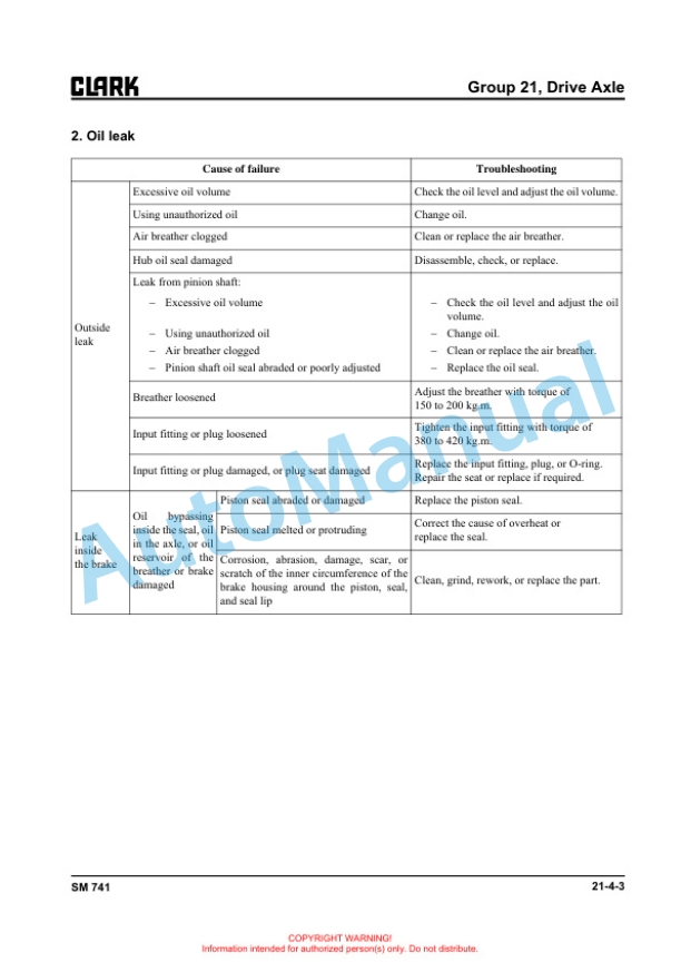 Clark C500 Y 180-200-225S-225L-250S-250L-300S-300L-350 Service Manual SM-575