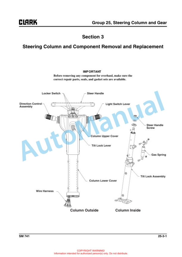 Clark C 20, 25, 30, 35 L-G, C 20, 25, 30, 32C L Service Manual SM-1044