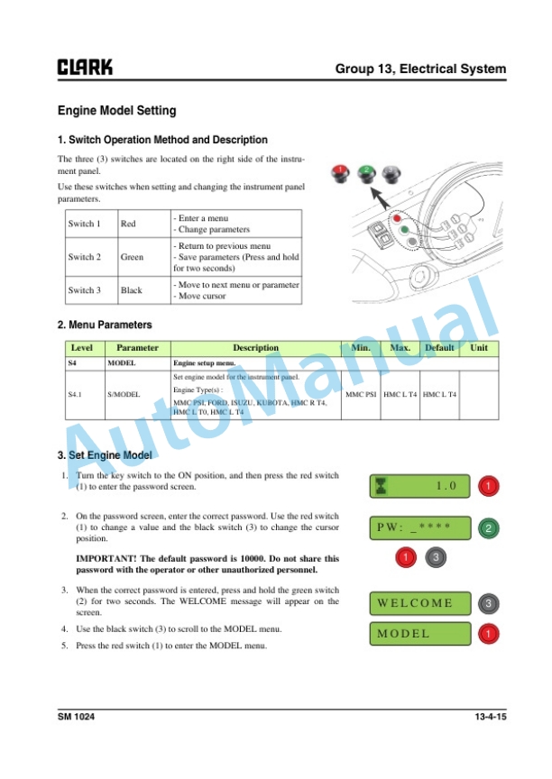 Clark C15, 18, 20s D, L, G, C20, 25, 30, 35 D, L, G, C15, 18, 20sC L, G, C20, 25, 30, 32C L, G Service Manual SM-709