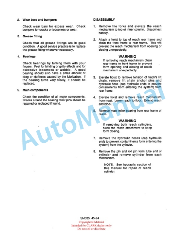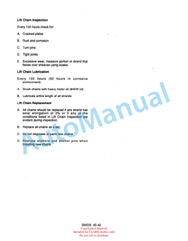 Clark C40, 45, 50s, 55s D, C40, 45, 50s, 55s L Service Manual SM-810