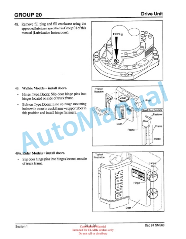 Clark P-25, HWP-25, PWD-25, HWD-25, P-30, HWP-30, PWP-30, HWD-30, HWD-36, PWD-36 Service Manual SM-568