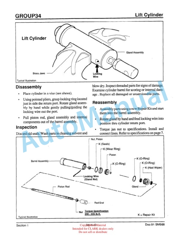 Clark C500 Y 180-200-225S-225L-250S-250L-300S-300L-350 Service Manual SM-575