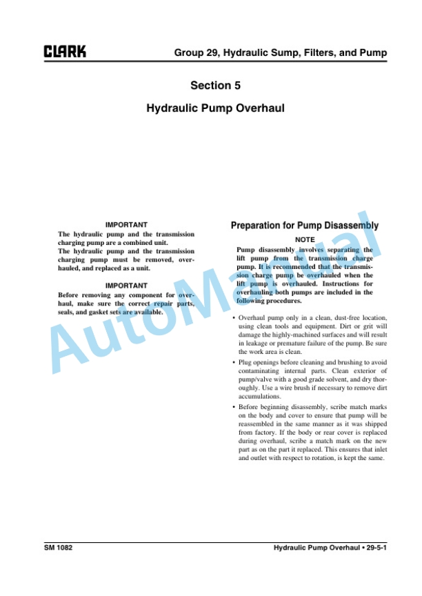 - 15.5. Section 5 Hydraulic Pump Overhaul