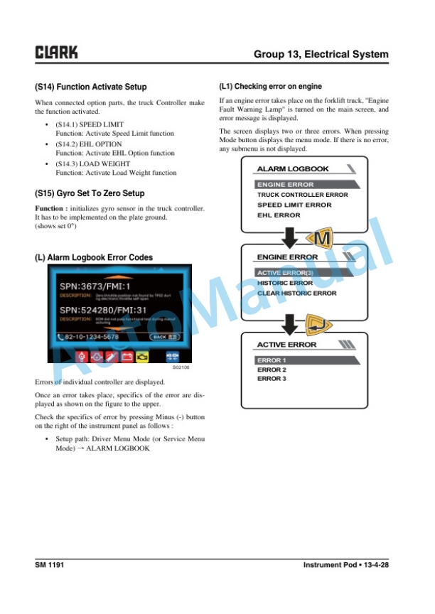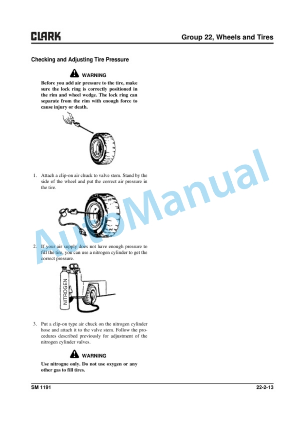 Clark S 40s D, S 40 D, S 45s D, S 45 D, S 50s D, S 50 D, S 55 D, S 60 D Service Manual SM-1191