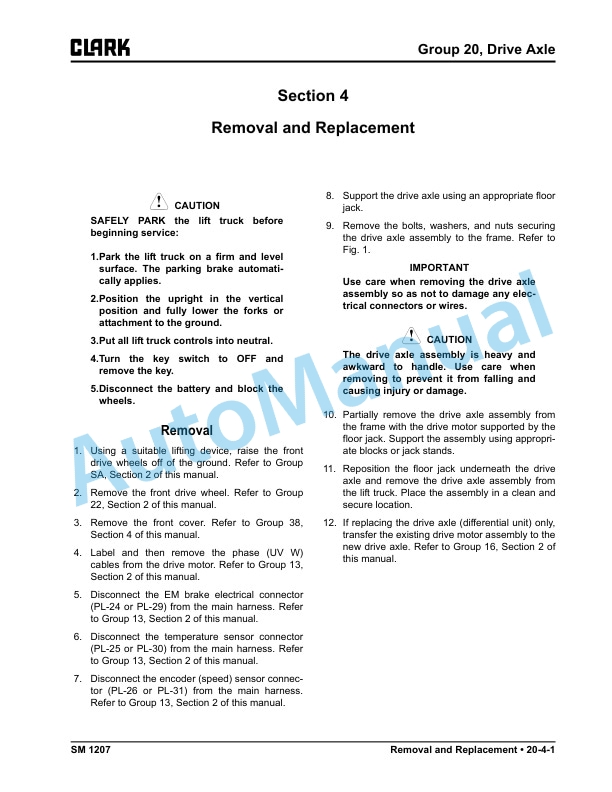Clark C40, 45, 50s, 55s D, C40, 45, 50s, 55s L Service Manual SM-810