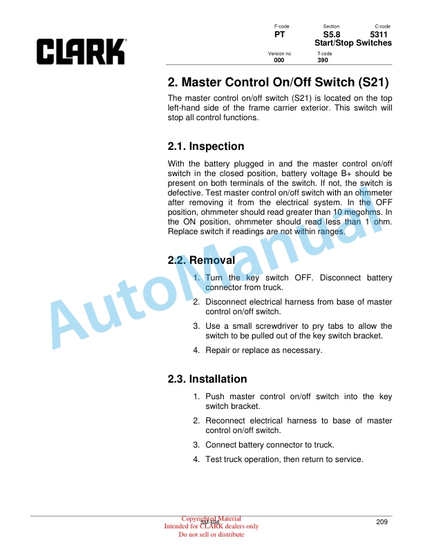 Clark C 40, 45, 50s, 55s D, C 40, 45, 50s, 55s L Service Manual SM-942