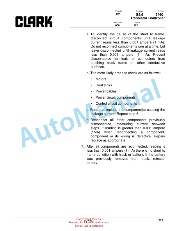 Clark C 15s L, C 18s L, C 20s L, C 15sC L, C 18sC L, C 20sC L Service Manual SM-1198