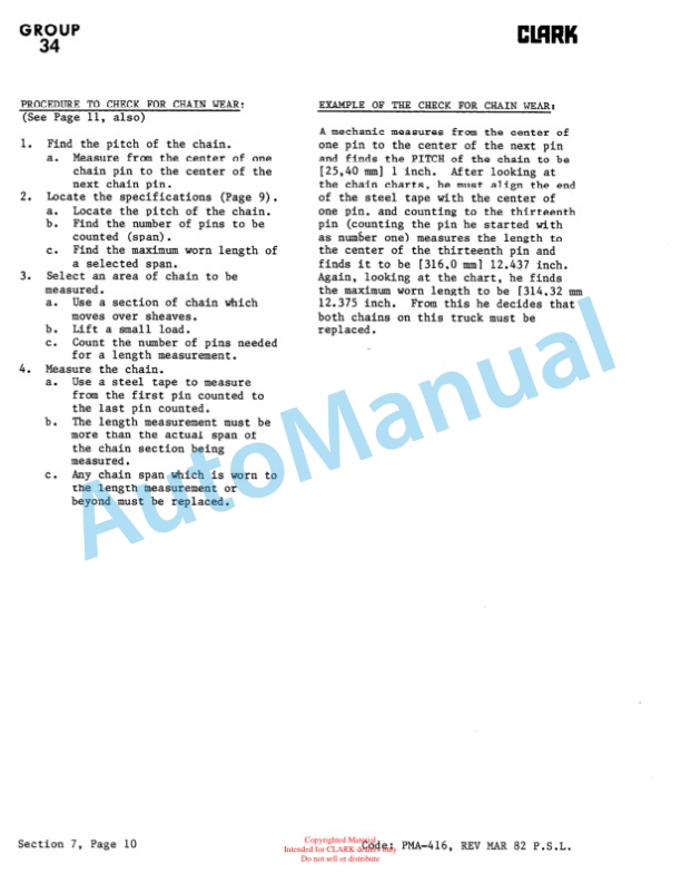 Clark C500 235 Gasoline Planned Maintenance and Adjustment Procedures Manual PMA-270
