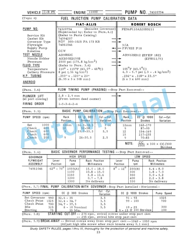 - 5.8. Fuel Injection Pump Calibration Procedures