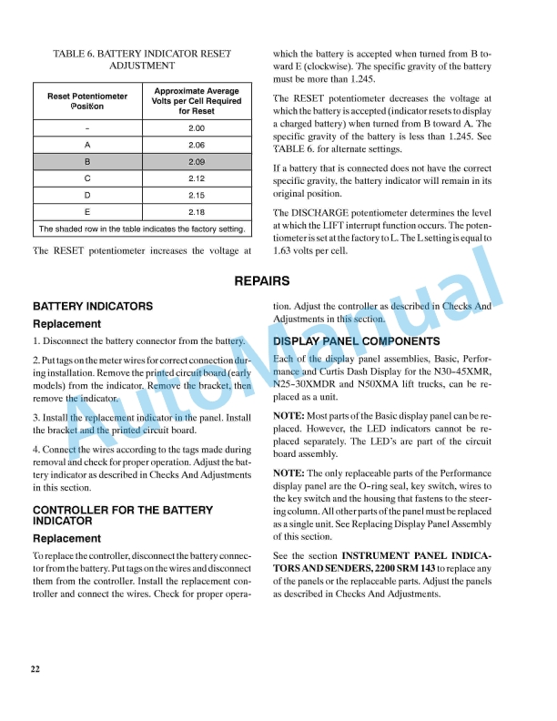 - 135.2.3. BATTERY INDICATORS WITHOUT LIFT INTERRUPT, LATER MODELS
