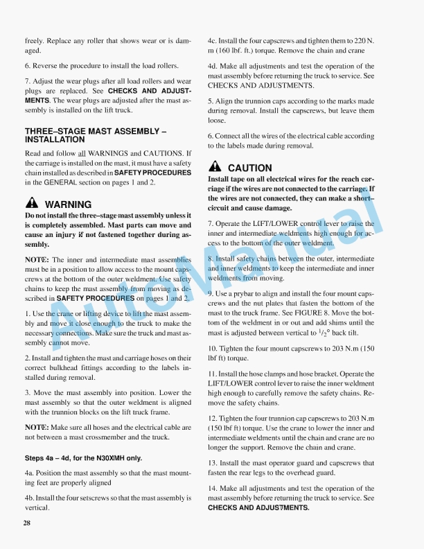 - 126.5.4. Inner And Intermediate Mast Assemblies – Removal And Installation