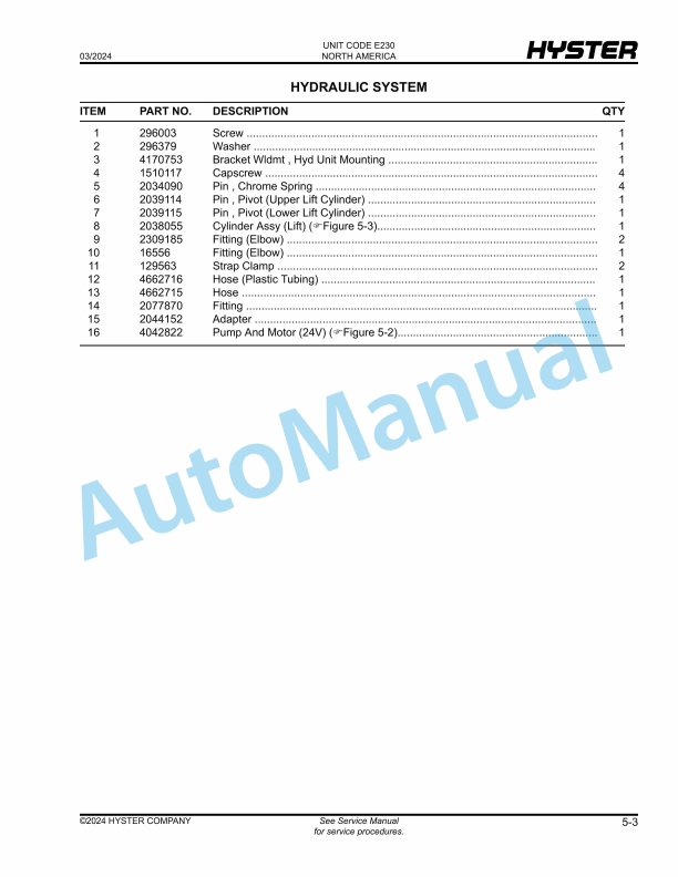 Hyster B60ZAC2 (E230) Parts Manual