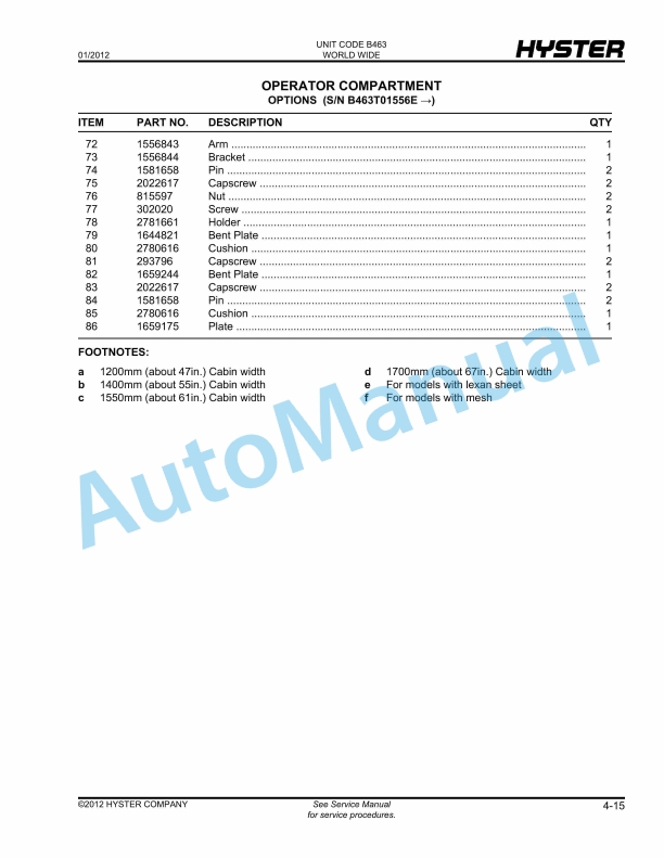 Hyster A217 Parts Manual