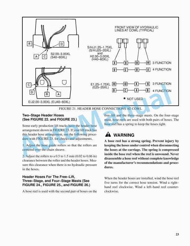 - 130.3.6. HEADER HOSE ARRANGEMENTS H/E1.501.75XM, H/S2.00XMS (H/S/E2535XM, H/S/E40XMS) and J1.602.00XMT (J3040XMT)