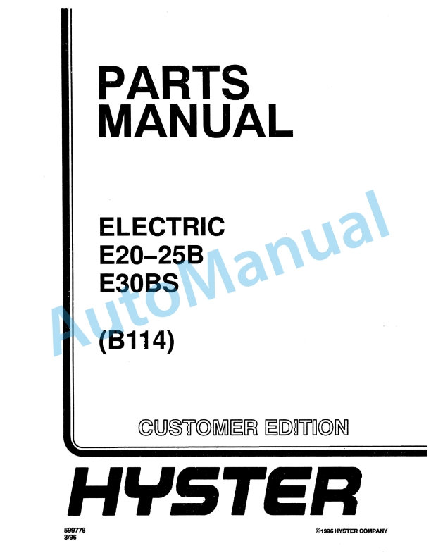 Hyster E20-25B, E30BS (B114) Electric Parts Manual