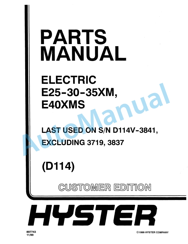 Hyster E25-30-35XM, E40XMS (D114) Electric Parts Manual