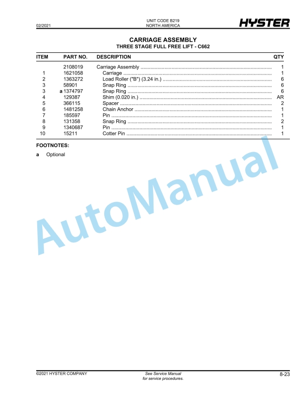 - 17.3. CARRIAGE ASSEMBLY TWO STAGE LIMITED FREE LIFT – C661