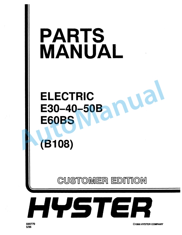 Hyster E30-40-50B, E60BS (E108) Electric Parts Manual