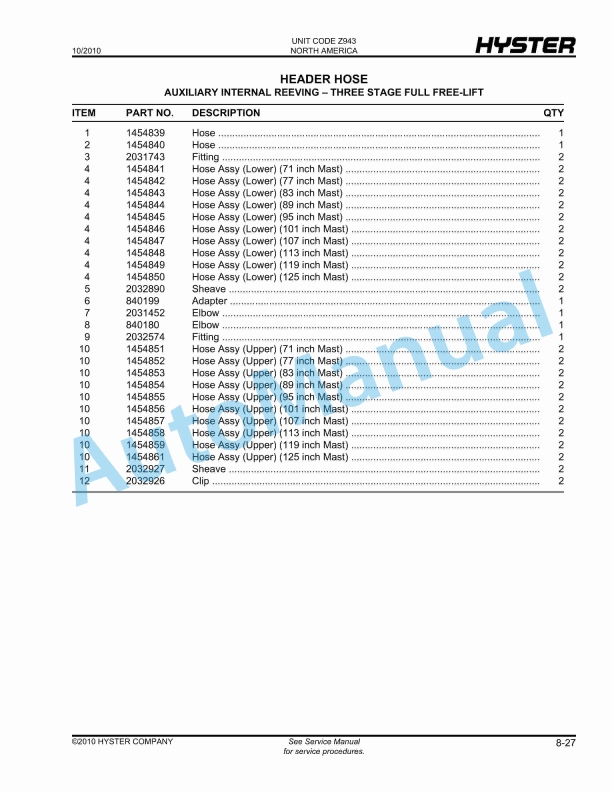 - 12.10. HEADER HOSE AUXILIARY INTERNAL REEVING – THREE STAGE FULL FREE-LIFT