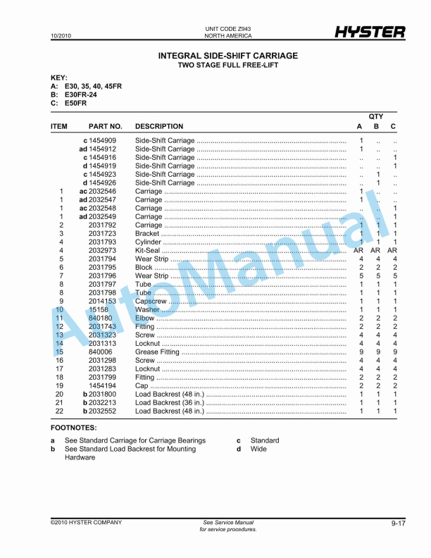 Hyster E30FR-50FR, E30FR-24 (Z943) Parts Manual