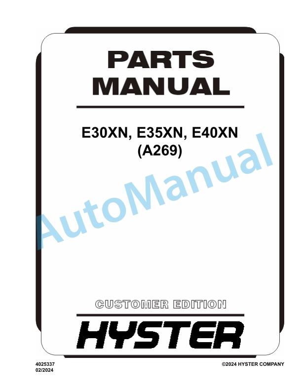 Hyster E30XN, E35XN, E40XN (A269) Parts Manual