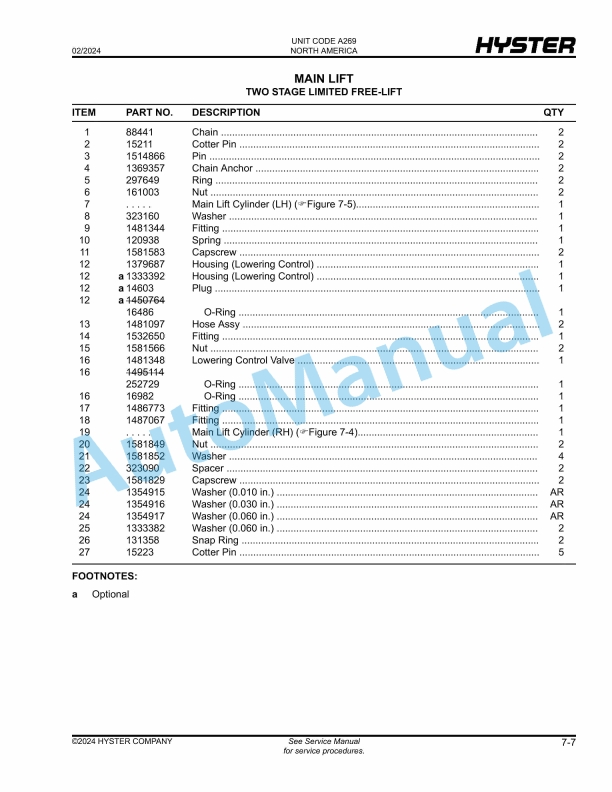 Hyster A216 Parts ManualAlternative view of Hyster A216 Parts Manual