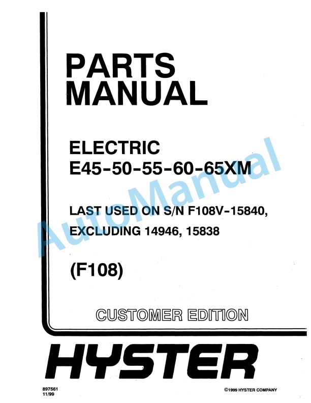 Hyster E45-50-55-60-65XM (F108) Electric Parts Manual