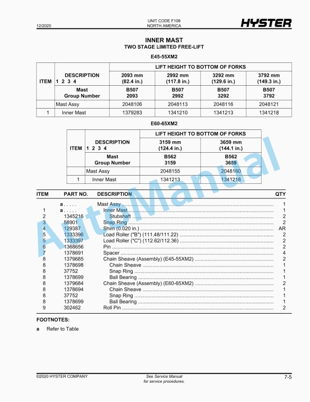 - 14.2. INNER MAST TWO STAGE LIMITED FREE-LIFT
