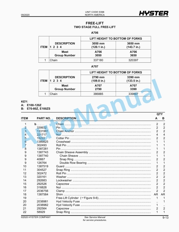 - 23.8. INTEGRAL SIDE-SHIFT THREE STAGE FULL FREE-LIFT – E70-80Z, E100ZS
