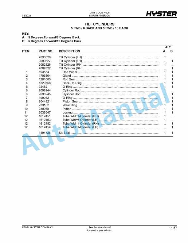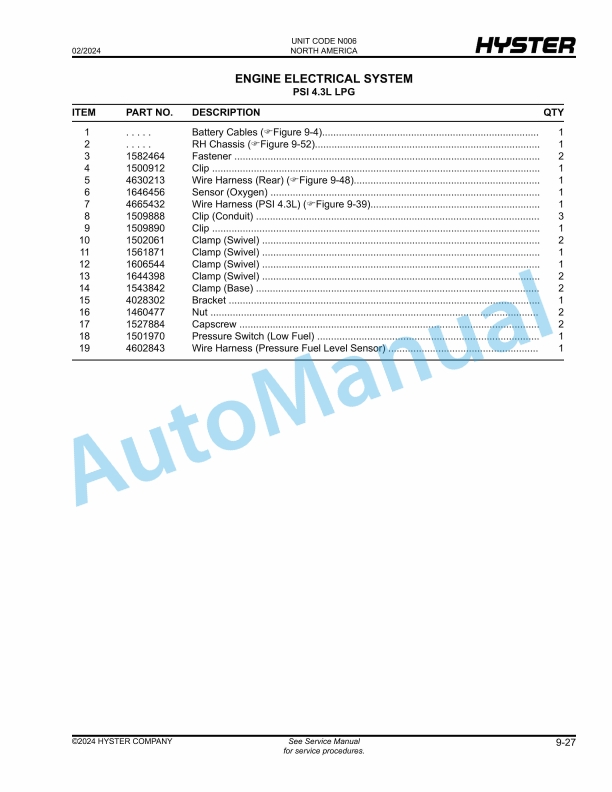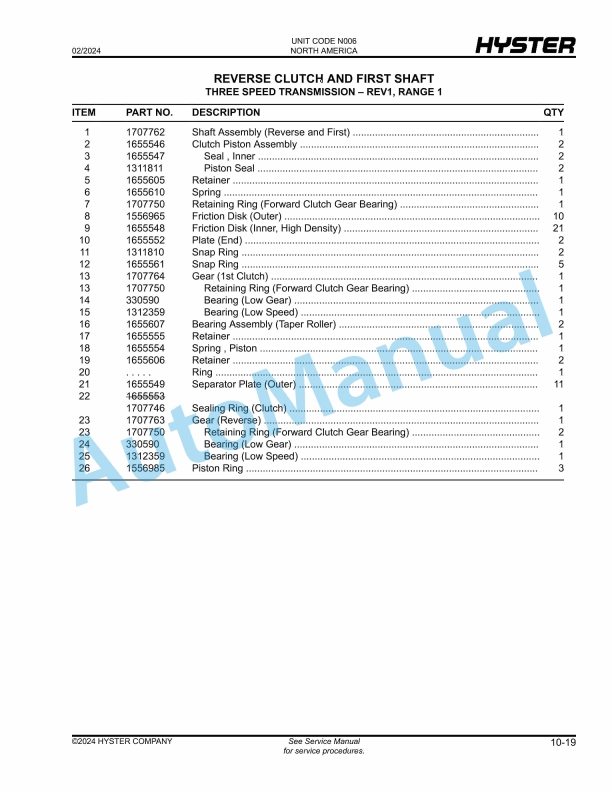 Hyster H135FT, H155FT, H155FTS, H170FTS (N006) Parts Manual