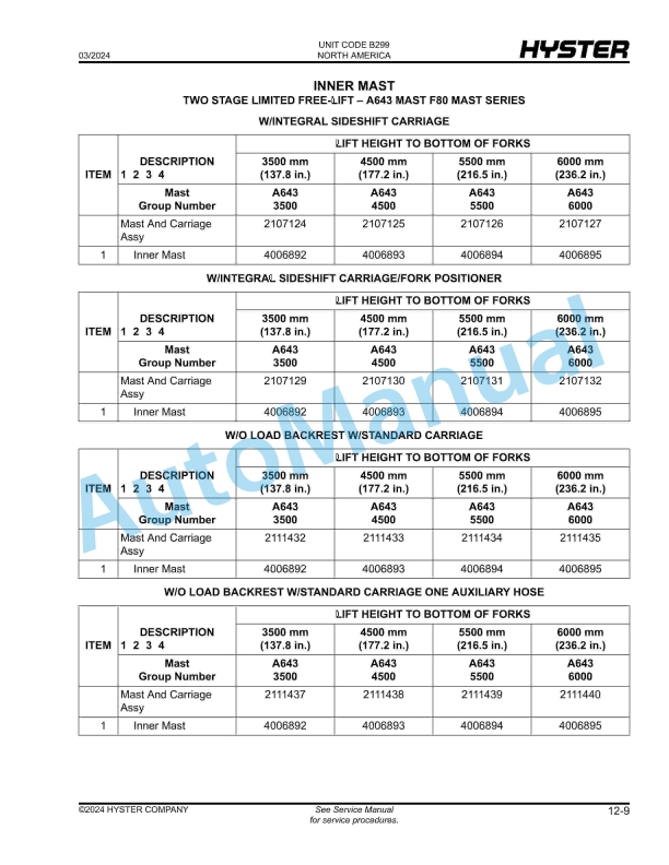 • 49.3. INNER MAST TWO STAGE LIMITED FREE-LIFT – A643 MAST F80 MAST SERIES