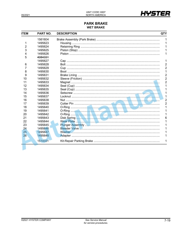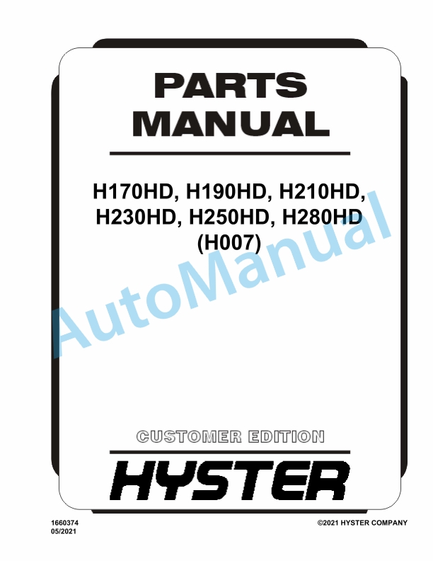 Hyster H170HD, H190HD, H210HD, H230HD, H250HD, H280HD (H007) Parts Manual