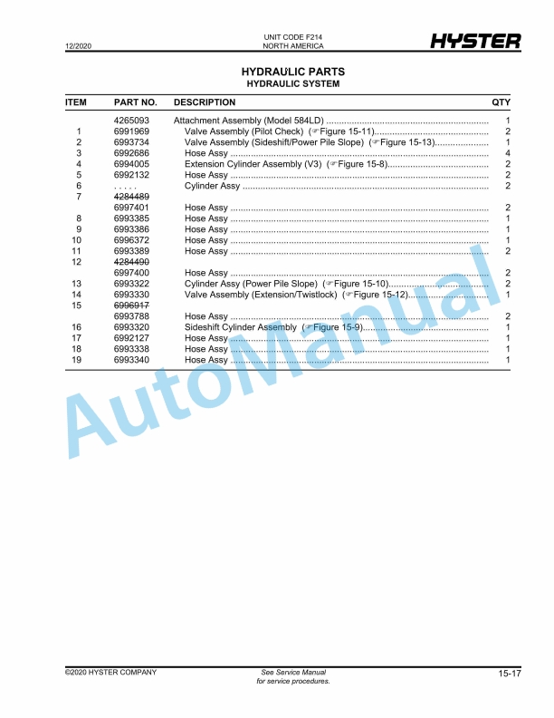 Hyster H180XD-EC6 to H230XD-ECD9 (F214) Parts Manual