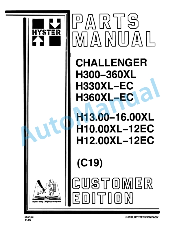 Hyster H300-360XL, H330XL-EC, H360XL-EC, H13.00-16.00XL, H10.00XL-12EC, H12.00XL-12EC (C19) Challenger Parts Manual