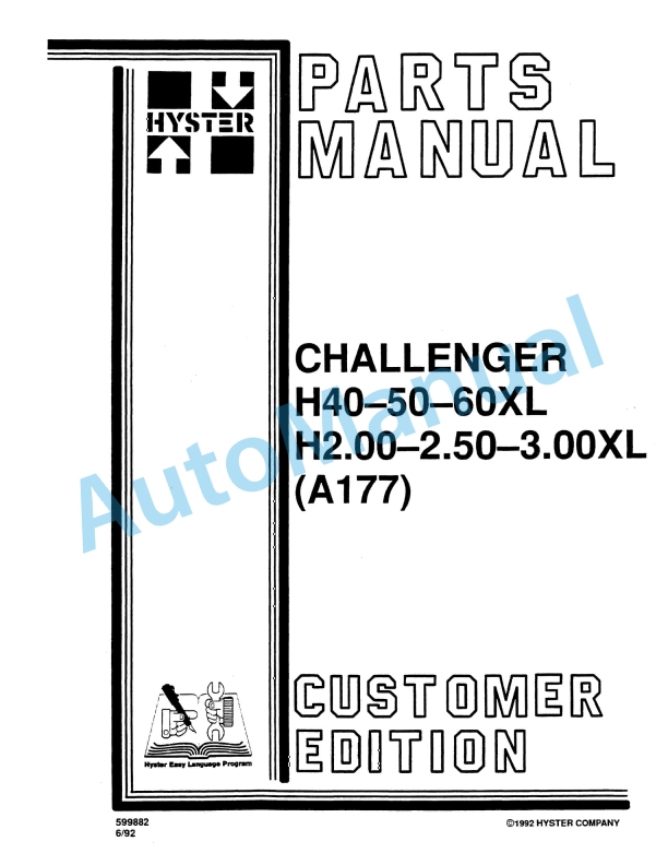 Hyster H40-50-60XL, H2.00-2.50-3.00XL (A177) Challenger Parts Manual