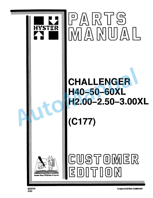 Hyster H40-50-60XL, H2.00-2.50-3.00XL (C177) Challenger Parts Manual