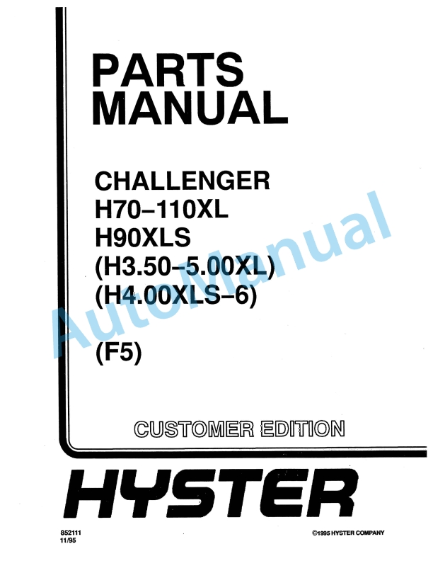 Hyster H70-110XL, H90XLS (F5) Challenger Parts Manual