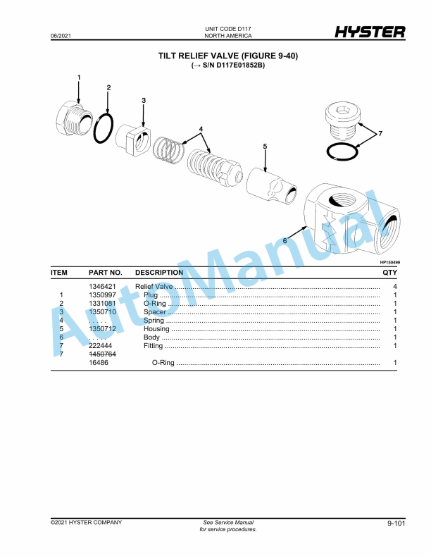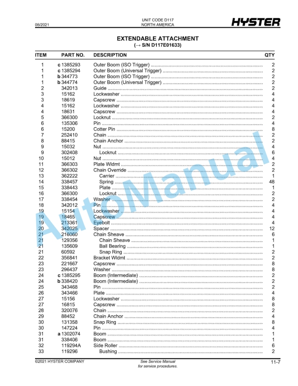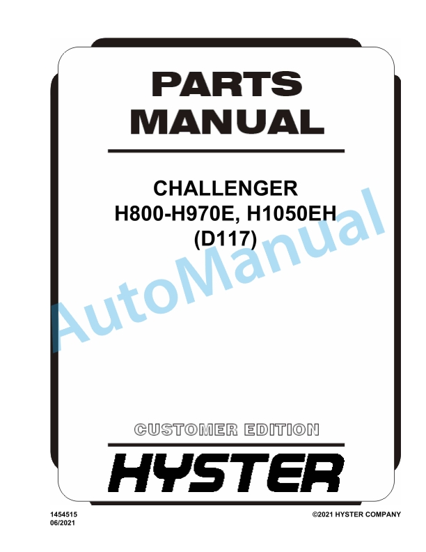 Hyster H800-H970E, H1050EH (D117) Challenger Parts Manual