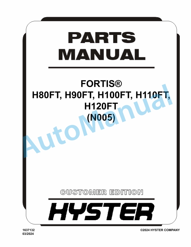 Hyster H80FT, H90FT, H100FT, H110FT, H120FT (N005) Fortis Parts Manual