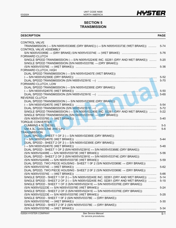 • 49.17. TRANSMISSION DUAL SPEED – SHEET 1 OF 2 ( S/N N005V02390E (Dry Brake)) ( S/N N005V02407E (Wet Brake))