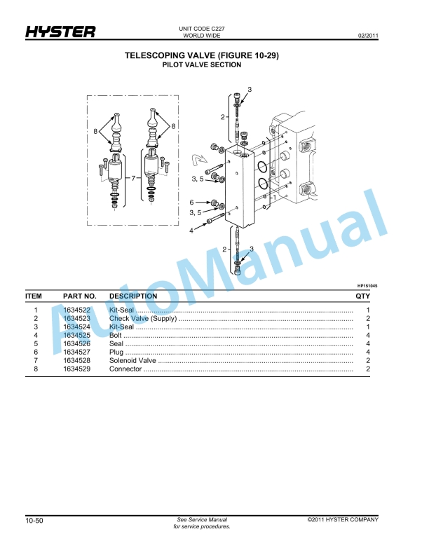 Hyster HR45-27, HR45-31, HR45-40S, HR45-36L, HR45-40LS, HR45LSX (C227) Parts Manual
